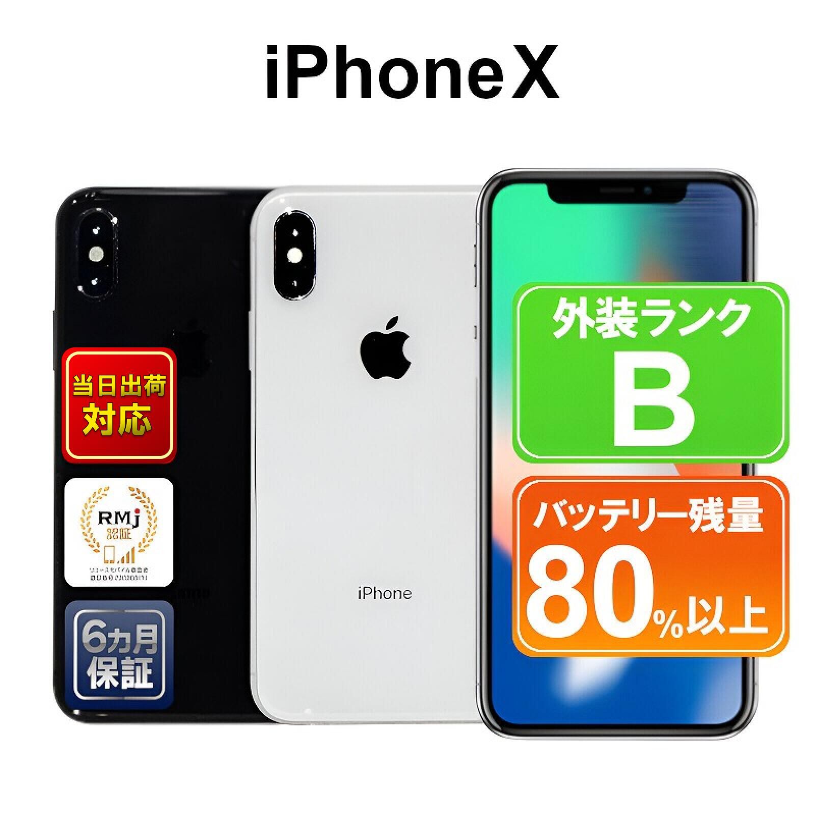 【中古】Apple iPhoneX 256GB シルバー スペースグレイ SIMフリーor 解除済 付属品無 6ヶ月保証 赤ロム保証 スマホ