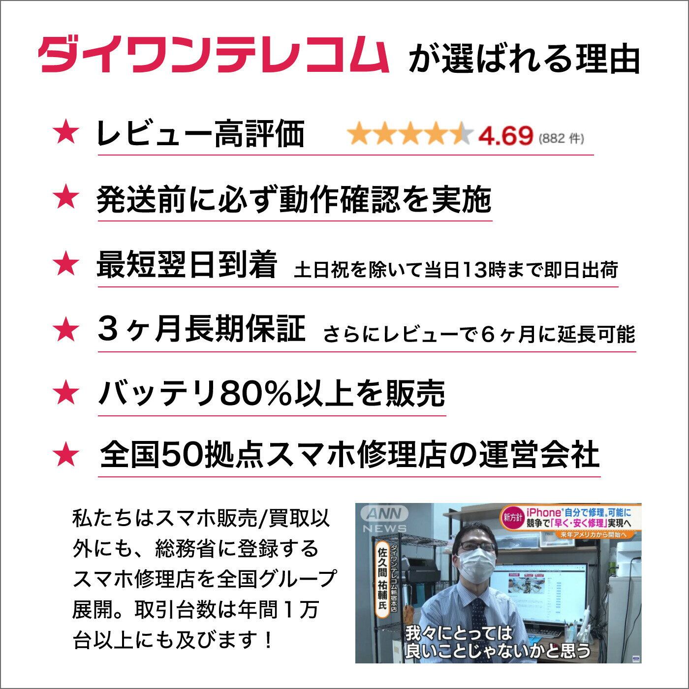 商品の状態 ダイワンでは商品の外装の程度に応じてランクを設けています。 商品ランクの一覧 ネットワーク利用制限 ネットワーク制限について詳しい説明は下記よりご確認ください。 ネットワーク利用制限解説 SIMカードサイズ SIMカードのサイズは端末によって様々な種類がございます。 SIMカードの違い SIMロック解除 SIMフリーやSIMロック解除の疑問を徹底解消します。 SIMフリー完全マニュアル ※当商品の詳細は商品の「容量・ランク・カラー」をご選択のうえ、ページ下部の【商品仕様】をご確認ください。 ※SIMフリー品であってもキャリアやOSバージョンによってはご利用できない場合があるため、事前にご利用キャリアのHP上で提供している動作確認端末一覧ページより対応可否をご確認ください。