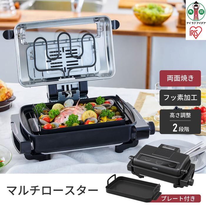 【ふるさと納税】ロースター マルチロースター 容器付 EMT-1103-B ブラック グリル 両面 ロースト タイマー 網焼き ホットプレート 卓上 焼魚 フィッシュロースター フッ素加工 アイリスオーヤマ | 新生活
